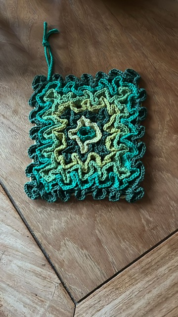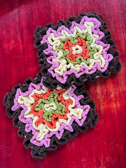 Hoe origineel zijn deze! Een zeer bijzondere haaktechniek waardoor je een volumineuze zeer decoratieve onderzetter bekomt. Kies zelf de grootte, voor tassen of glazen of wat groter voor kookpotten.Doordat ze zo dik zijn, kunnen ze ook als pannenlap gebruikt worden.