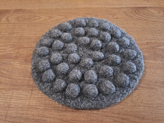 Kostprijs 35€ - viltwol voor 3 onderzetters inbegrepen. Er is keuze uit verschillende kleuren viltwol uit voorraad.